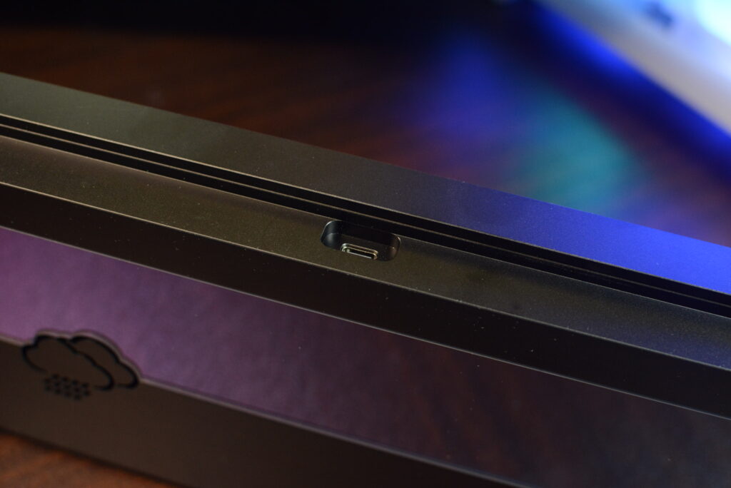 キーキャップがライティングを透過しないのもあり、自分はライティングをオフにしているので公表されているスペック通り、フル充電で450時間ほど使えそうです。