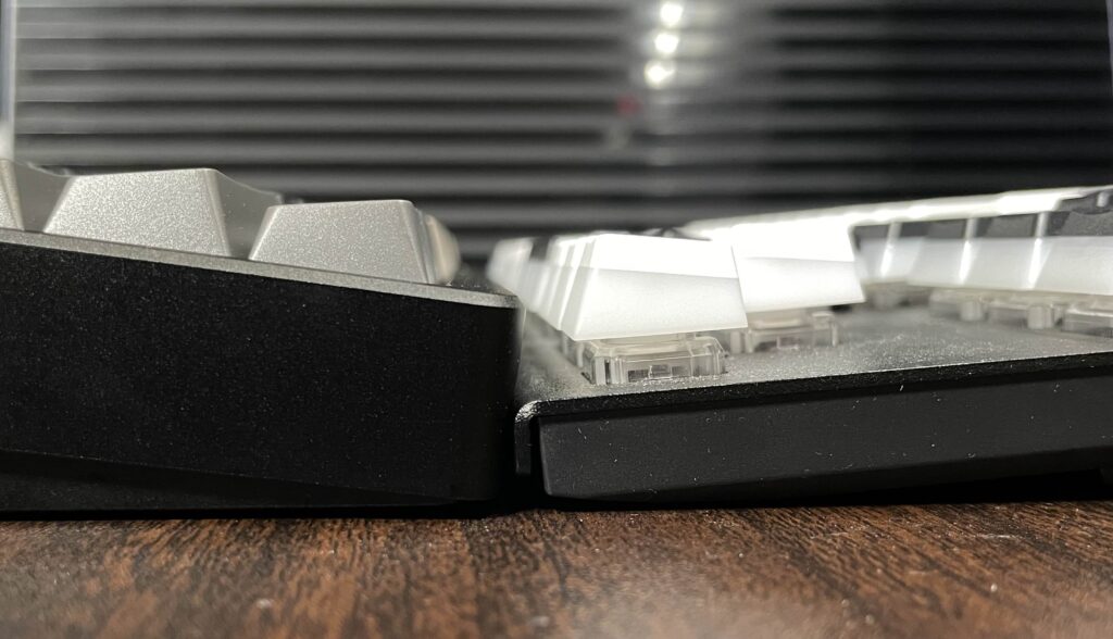 キーの押下圧も45gfと、若干重い寄りなことと組み合わさって、リストレストなしで長時間タイピングすると少し疲れます。