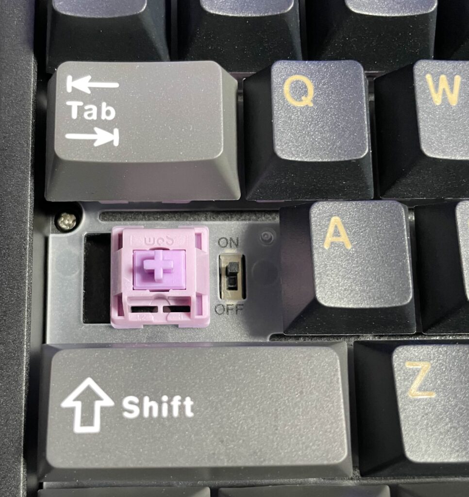 つまりキーキャッププーラーで外さないと切り替えできません。